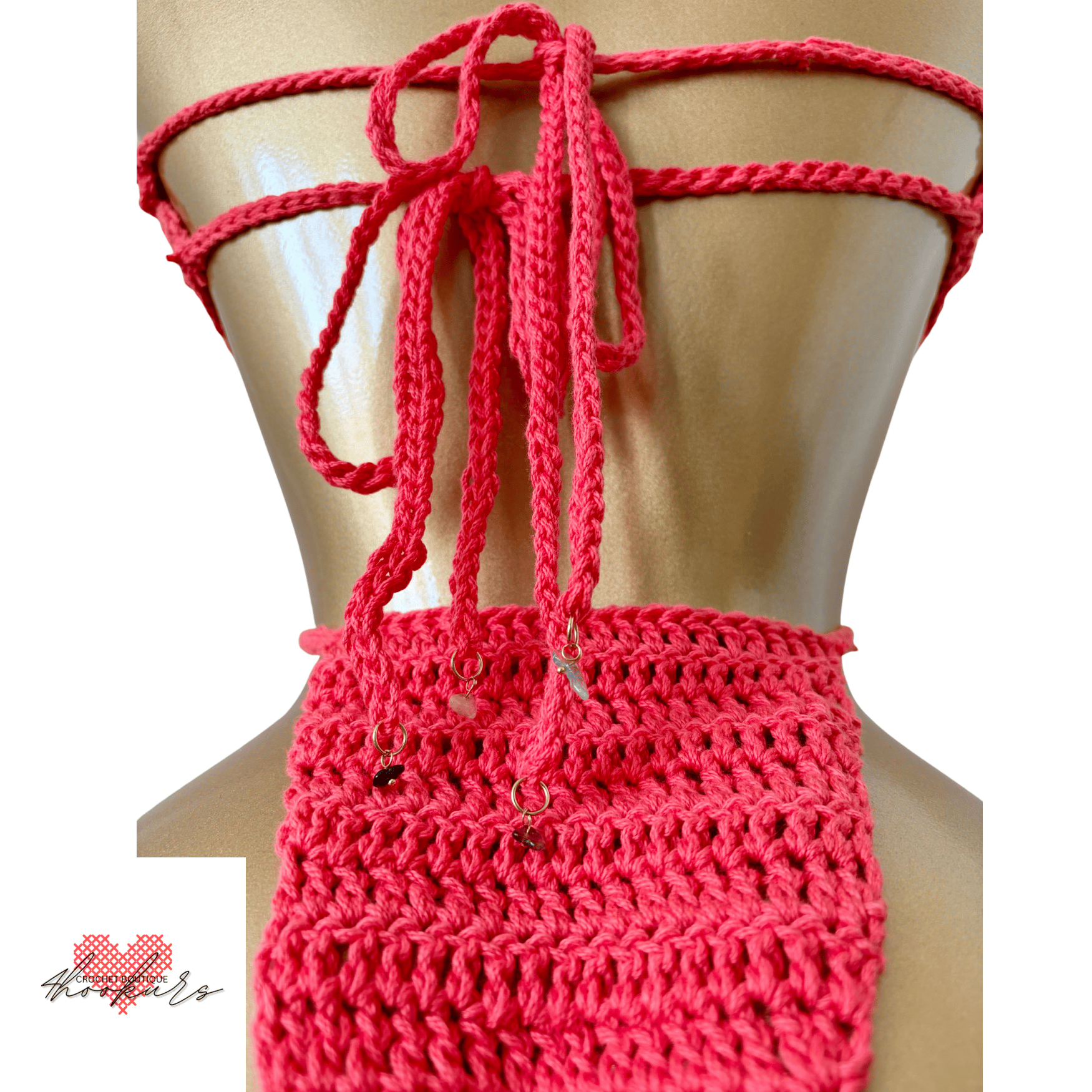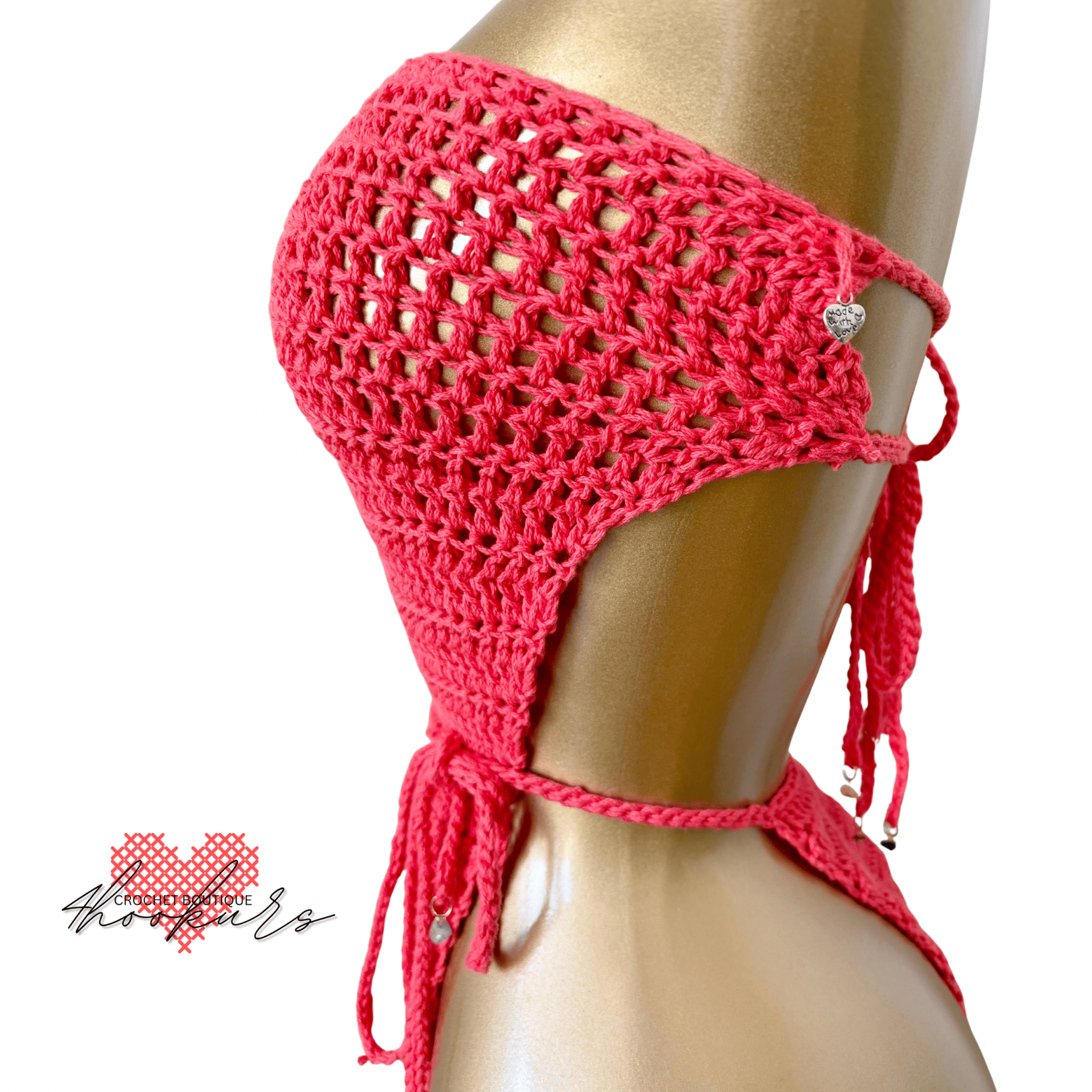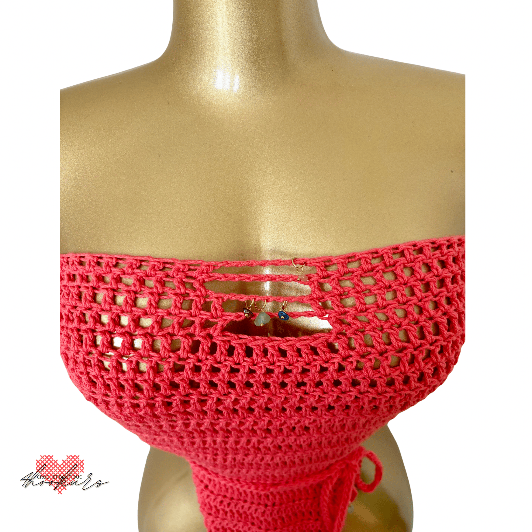Handmade crochet one-piece designed with a bold, feminine edge. This wrap-style design contours your body while staying effortlessly adjustable, made to stand out from beach days to golden hour moments and beyond.